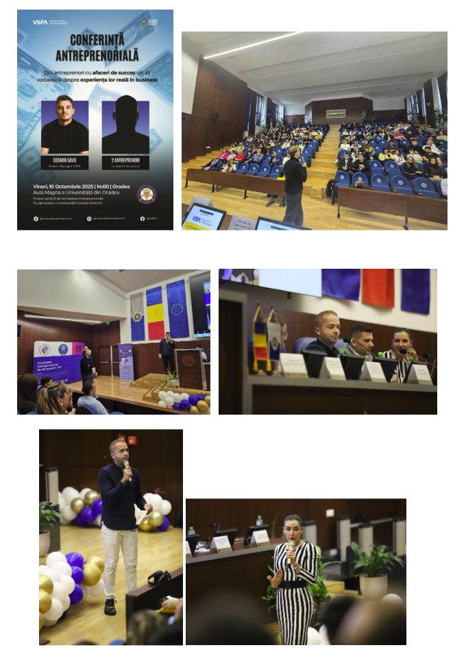 Aula Magna a Universitatea din Oradea a găzduit a doua ediție din anul 2025 a proiectului „Vreau să fiu Antreprenor” (VSFA), reunind peste 170 de studenți și cadre didactice interesați de antreprenoriat.